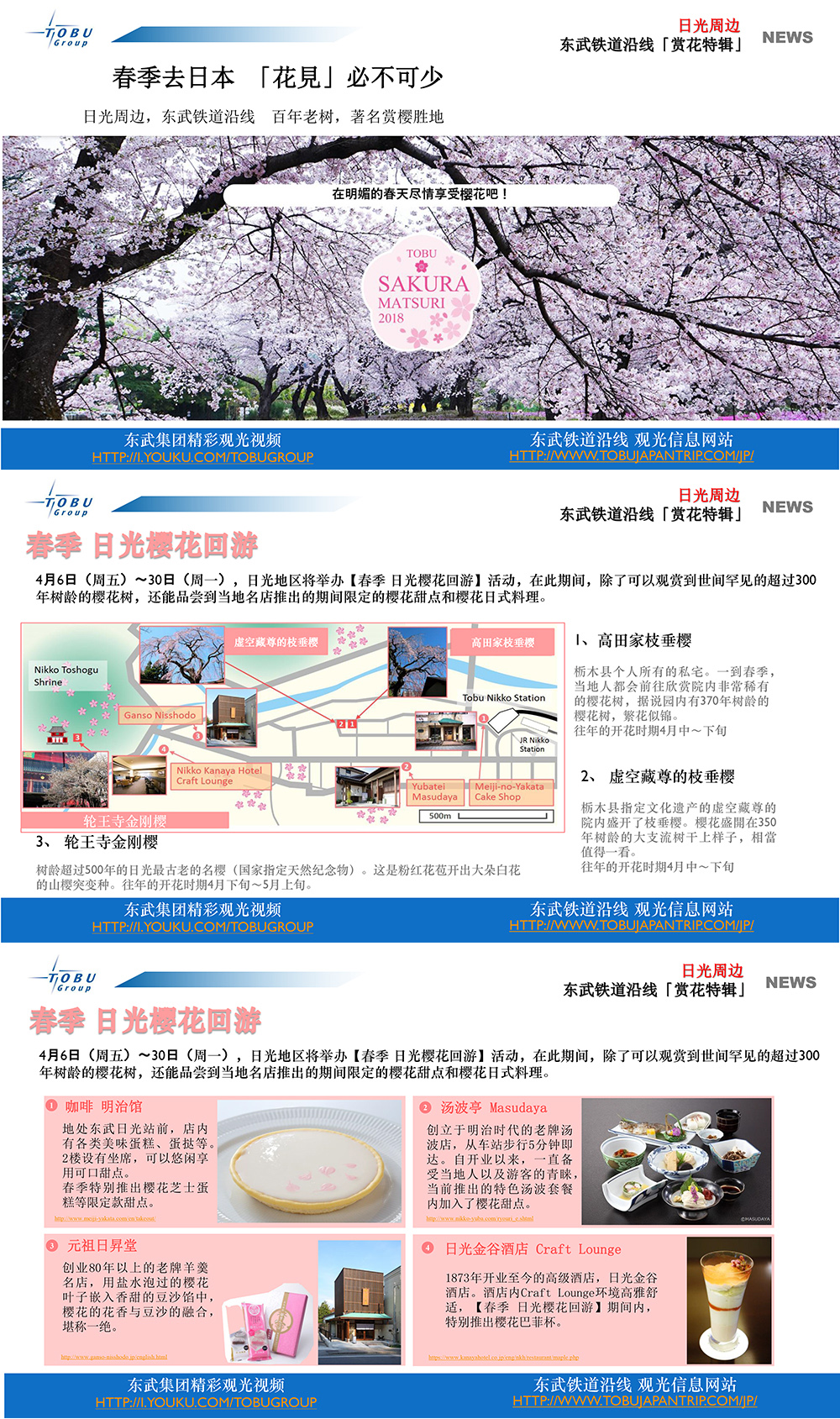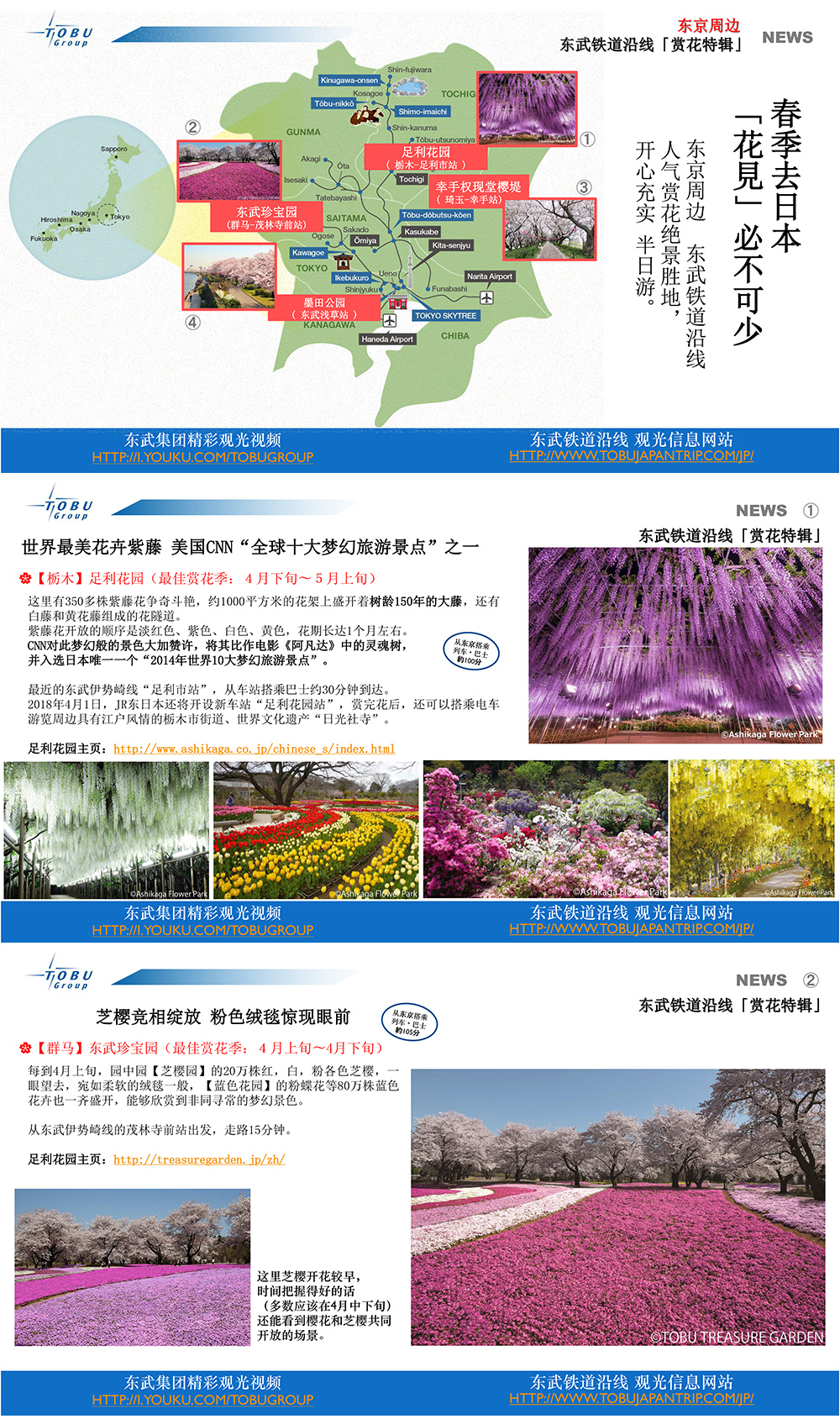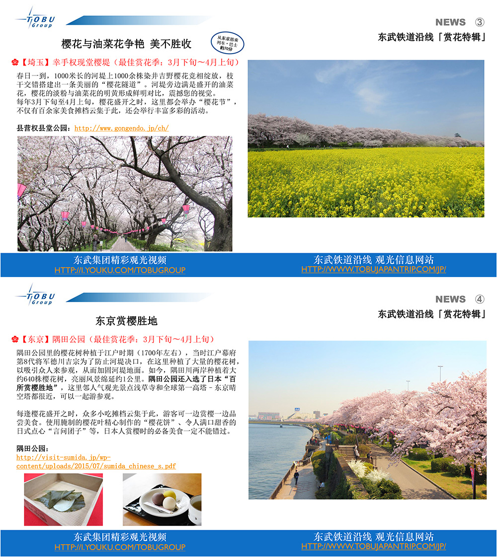 东京最佳赏樱景点+隅田川赏樱夜游船:[行程推荐点]1.本行程带您乘坐巴士游览东京都内几处著名的赏樱景点。除了参观东京都内著名的赏樱景点--昭和纪念公园、新宿御苑外,还会带您登上东京铁塔的大展望台俯瞰周边的樱花美景,内容非常精彩,敬请期待。还请您乘坐夜游船,从隅田川上欣赏夜樱。2.昭和纪念公园内的“樱之园”,广阔的绿地上种植了200棵樱花树,盛开时的美景,吸引了许多游客到此赏樱。另外,春季时则是可以欣赏郁金香、油菜花等竞艳的花卉,是都内非常有名的赏花景点之一。3.登上东京铁塔的大展望台,从150米处俯瞰芝公园等处盛开的樱花美景。4.新宿御苑建于明治39年(1906年),是当时作为皇室专用建造的近代西洋风格的庭园。由法式的古典庭园、英国风的风景庭园以及日本庭园巧妙结合的公园,非常少见的风景庭园。苑内种植着约65种1100多棵樱花树、梅树、杜鹃花、染井吉野樱等各种鲜花盛开,非常美丽。5.午餐在料亭“无门庵”享用正宗的日本料理。在纯日式风格的料亭内,忘却城市的喧嚣,静心享用美食。※请参照注意事项5。6.乘坐隅田川赏樱夜游船,从浅草出发航行约45分钟。可欣赏隅田川两岸盛开的樱花美景。原文链接(https://www.japanican.com/cn/tour/detail/BUS1J01211MKS/?typecd=TOU&kw=樱花&typegrpcd=TPA)
