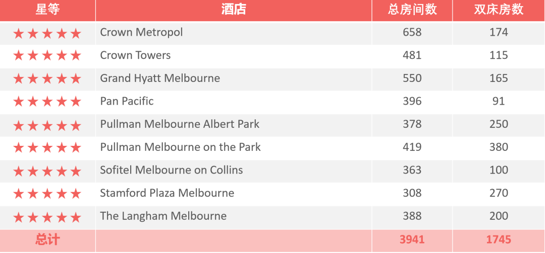 - 墨尔本常用五星酒店列表: