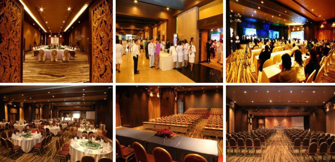 6 个泰式装潢的多功能厅/会议室,结合起来的面积可以达到1,100平方米,课桌式摆设可容纳300 -1,000个座位,圆桌式摆设可容纳300 -900个座位
