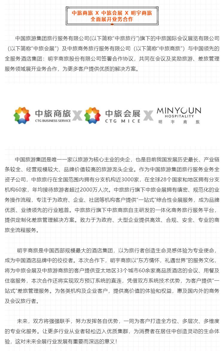 携手并进 | 中旅会展、中旅商旅携手明宇商旅精选六十余家酒店全面展开业务合作