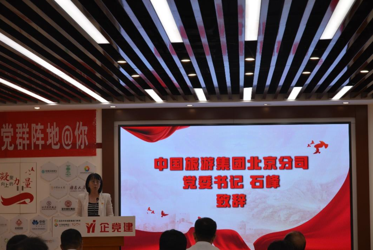 中国旅游集团北京分公司党委书记、总经理石峰在活动上做了主题发言,介绍了中国旅游集团的百年历史,并对此次与建国门街道的合作表示了高度肯定。她表示,经由此次活动,双方党建互促互进的政治优势将更好地转化为发展优势,在推进党建联建工作的同时引导旅游业有效复苏,积极完成党建与文旅产业链紧密结合的创新实践,共同在新时代的道路上取得新成效,新进展,新胜利。