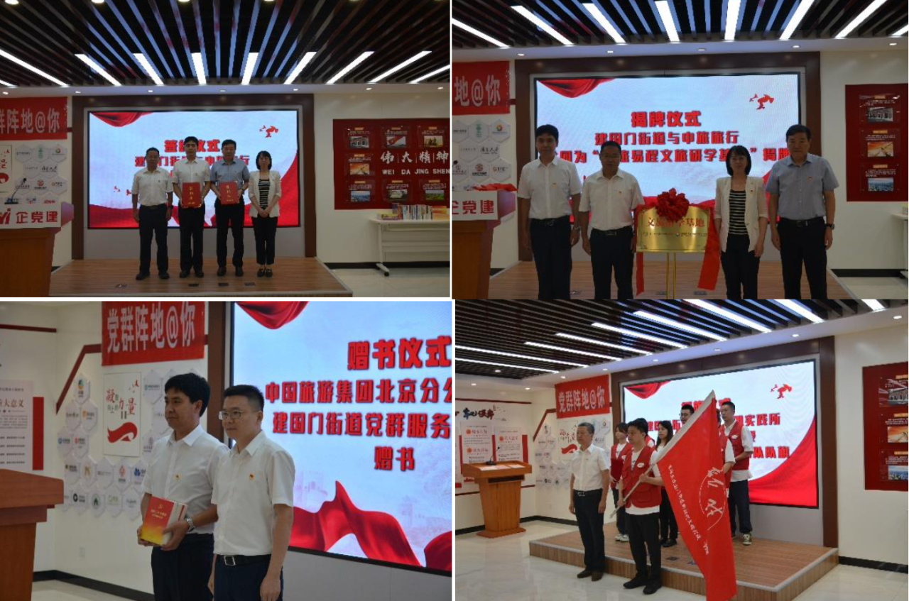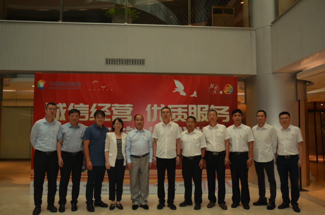 为庆祝中国旅游集团百年华诞,更好践行习近平总书记视察集团海南三亚免税店期间作出的“诚信经营 优质服务”的指示精神,也为凝聚党建联建合力,拓展党建融入业务工作思路,8 月 25 日,中国旅游集团北京分公司党委联合建国门街道党工委在北京市东城区中粮广场共同举办了“YI 企党建”谋发展,合作共赢谱新篇——暨“诚信经营优质服务,文明旅游从我做起”党建宣传主题活动。文化和旅游部机关服务局党委委员、副局长刘高潮,北京市东城区人大常委会副主任王森,建国门街道、中国旅游集团北京区域总部及七个事业群、中粮集团的相关领导和同志参加了活动。