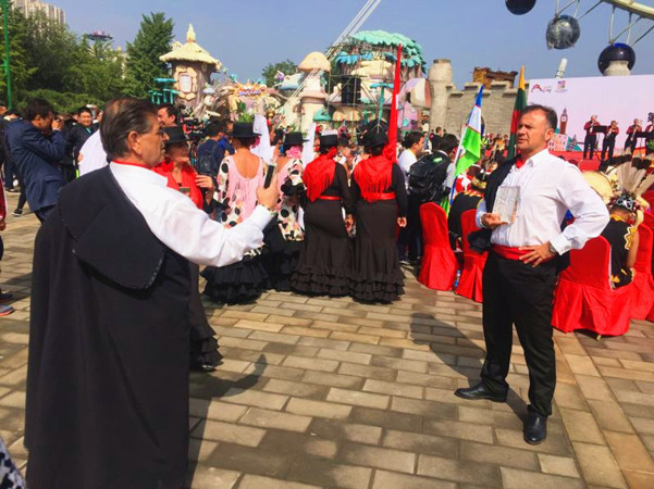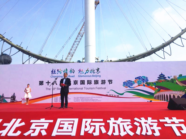 2016年10月5日,由北京市旅游发展委员会主办、中旅会展承办的第18届北京国际旅游节以“丝路情韵魅力北京”为主题,在北京石景山游乐园闭幕。一场盛大的闭幕式狂欢演出,给为期5天的国际旅游节画上了圆满的句号。来自美国、西班牙、土耳其、匈牙利等12个国家的300余名演员身着盛装,再次展示出各个国家的民族风情。北京市旅游发展委员会主任宋宇、副主任于德斌、石景山区政府副区长肖平、石景山区旅游委主任宋平、中旅总社常务副总经理张士刚、中旅会展副总经理张士京、副总经理谢建民、副总经理张昕丽等领导参加了闭幕式。