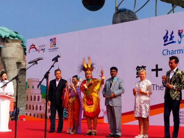 闭幕式在石景山游乐园全新摩天轮所在地摩天轮广场下举行。现场,北京市旅游发展委员会领导向参加本次北京国际旅游节的表演团体代表颁发了纪念奖杯,感谢各国艺术家远道而来,为促进文化交流、推动北京旅游产业的发展所做出的贡献。
