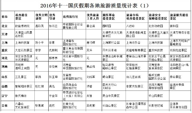 图为:国家旅游局发布十一旅游红黑榜