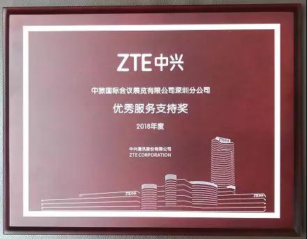 中旅会展深圳分公司作为中兴通讯的战略合作伙伴,在本次大会后荣获“中兴通讯股份有限公司2018年度优秀服务支持奖”殊荣。