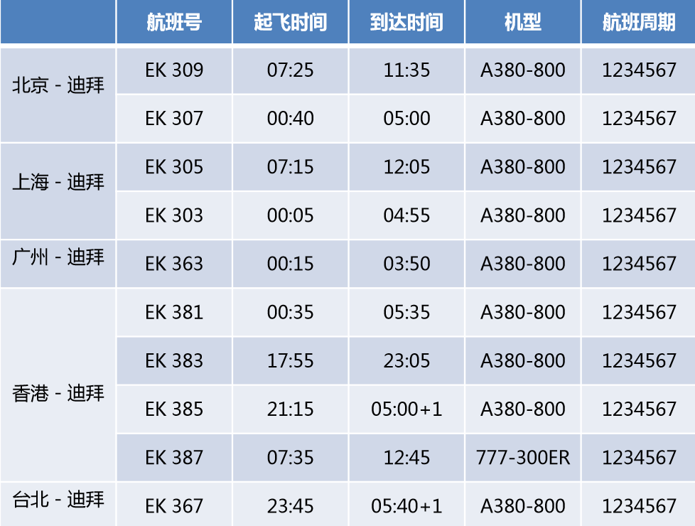 迪拜航空公司飞往中东及亚非的90多个目的地;