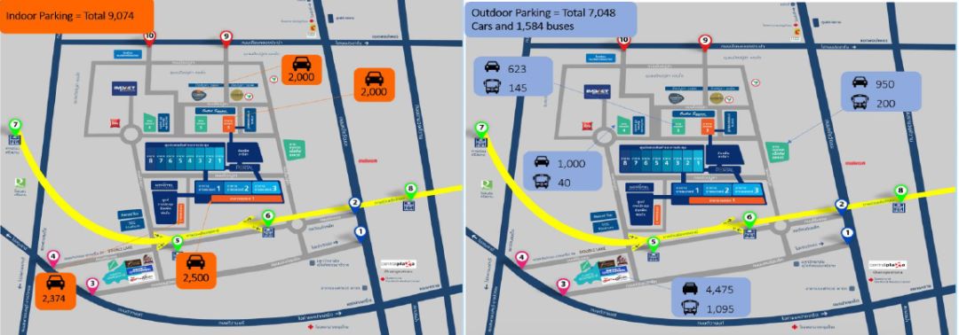 5. 停车场容量:15,000辆小车和2,050辆大巴